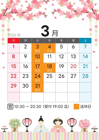 ■店休日 *-*-*-*-*-*-*-*-*-*-*-*-*-*-*-*-*-*-*-*-*-*-*-*-*-*-*-*-*-*-*-*-* 3/3(火)、3/4(水)、3/10(火)、3/17(火)、3/18(水)、3/24(火)、3/31(火) *-*-*-*-*-*-*-*-*-*-*-*-*-*-*-*-*-*-*-*-*-*-*-*-*-*-*-*-*-*-*-*-*